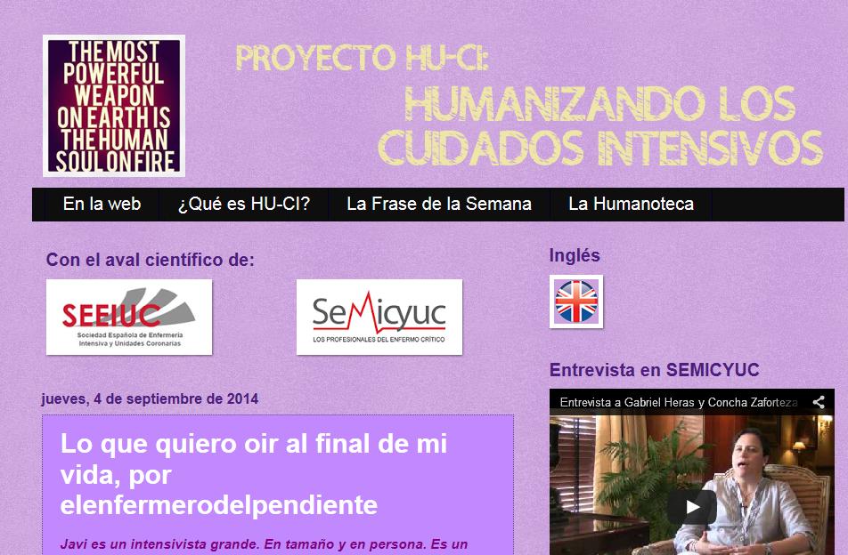 Se trata del blog http://www.humanizandoloscuidadosintensivos.com, con el que tuve el placer de colaborar recientemente a través de un post «Lo que quiero oir al final de mi vida»