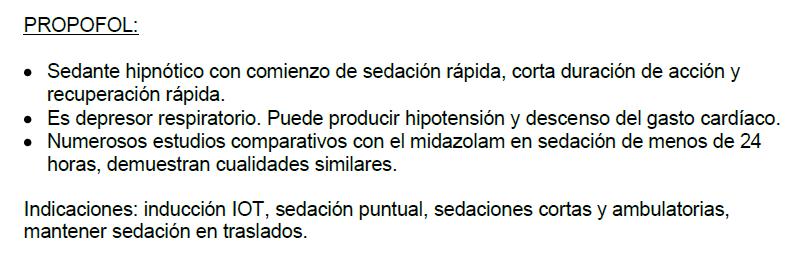 En nuestra unidad es de elección la sedoanalgesia con la combinación de Morfico y Propofol, pero en ocasiones se varía para optimizar la situación hemodinámica y/o de sedación.