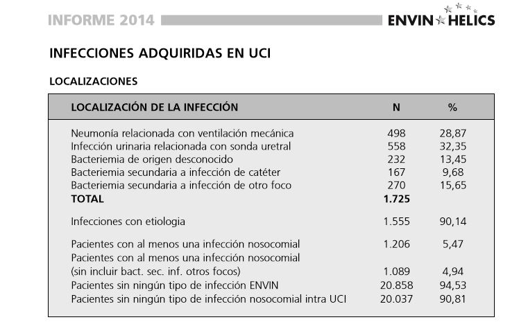 De este modo, la principal causas de enfermedad nosocomial en UCI según este informe es la Bacteriemia relacionada con Sondaje Uretral.