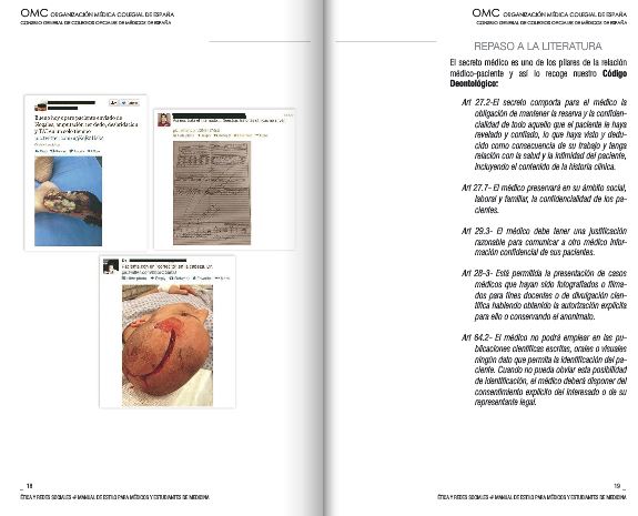 La pregunta entonces era evidente, ¿por qué era tan interesante? ¿para qué archivarla? No exponía ningún caso clínico, ni sintomatología, ni tratamiento, ni radiografías, ni TAC, ni alternativas terapéuticas ni siquiera cuál había sido la asistencia extrahospitalaria prestada. ¿cuál era entonces el interés de quienes aplaudían con fervor esta fotografía? Rápidamente me vino a la mente el libro de la OMC sobre Guia de uso y buenas prácticas en RRSS para médicos y estudiantes de Medicina, y en concreto una página que reflejaba exactamente un caso similar.