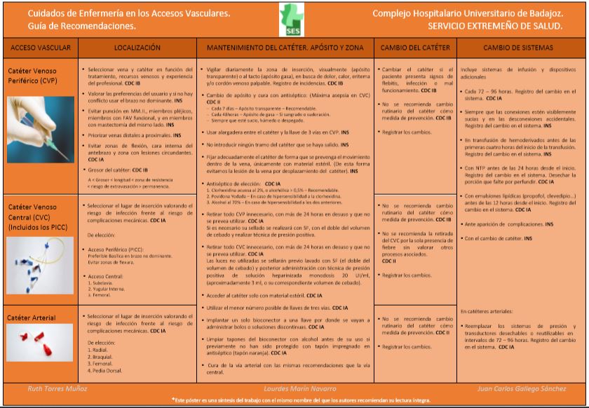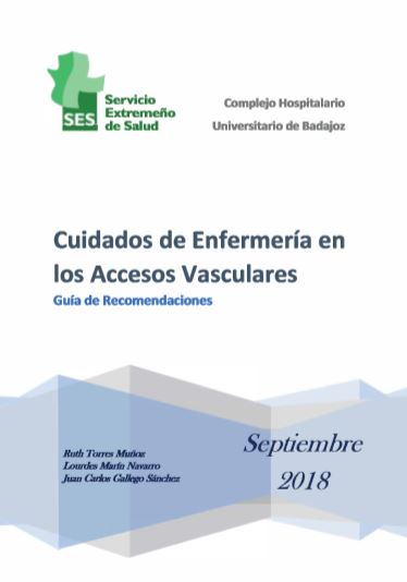Hoy quiero compartir con vosotros un interesante y muy reciente manual de cuidados de Enfermeria en los accesos vasculares, elaborado por las compañeras enfermeras del Hospital de Badajoz (CHUB) Ruth Torres Muñoz, Lourdes Marín Navarro y Juan Carlos Gallego Sánchez, pertenecientes a la Gerencia de Salud del Area de Badajoz.