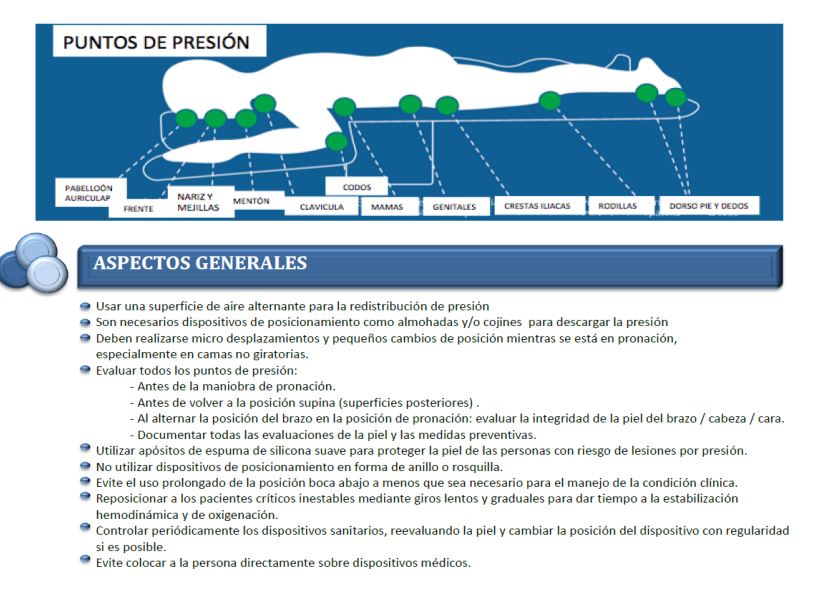 Por último, establece un muy buen recurso sobre prevención de UPP en el paciente en Decúbito Prono, técnica como sabemos muy habitual en este tipo de pacientes.