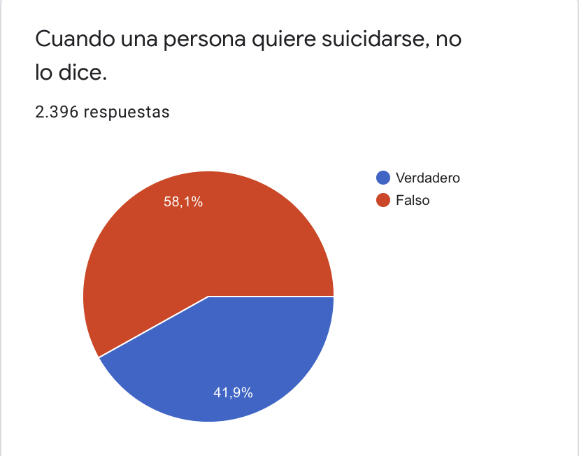 Ante el mito de que “Cuando una persona quiere suicidarse, no lo dice” (Gráfica 2): El 41,9% de los profesionales de emergencias que respondieron a la encuesta, afirmaban que este enunciado era verdadero. Por el contrario y según datos de la Sociedad Española de Suicidología (5), el 18% de los pacientes que se suicidaron habían consultado a su médico de atención primaria el mismo día que se suicidaron, el 66% lo había hecho durante el último mes, y el 75% en los tres últimos meses. Además, el 60% pidieron ayuda durante la última semana. Pero además, es que cerca del 40% de los médicos de atención primaria desconocen los antecedentes suicidas de los pacientes, de los cuales, entre 1-10%
