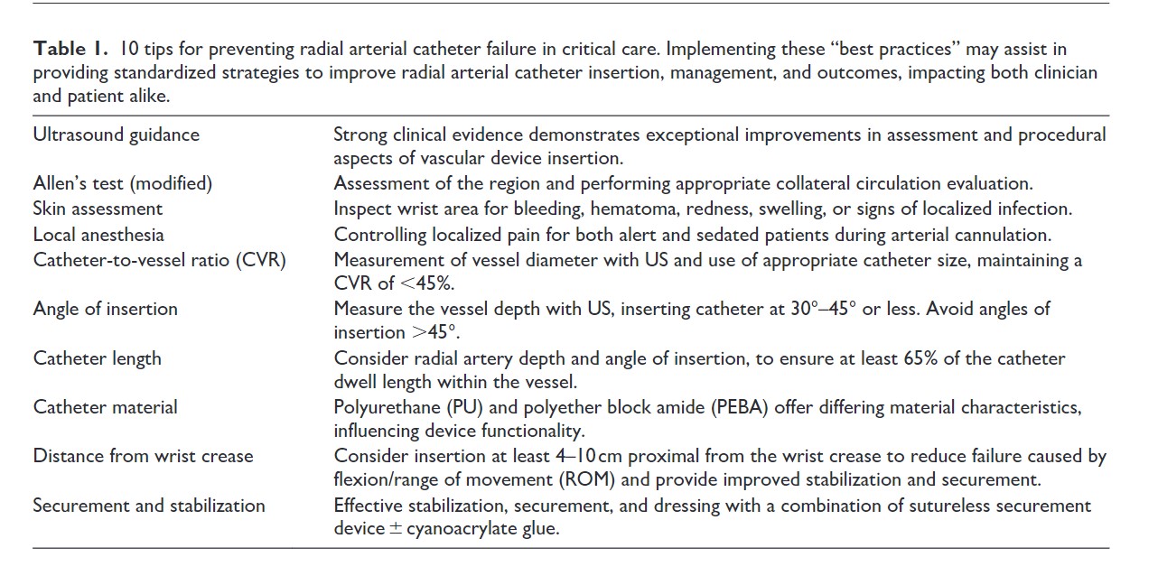 Con el fin de reducir el fracaso después de la colocación del catéter radial, se recomienda que más del 65% del catéter