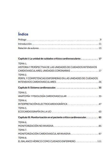 Este ejemplar, sin duda, hace una gran contribución al conocimiento de la práctica enfermera y me atrevo a decir, que tengo el honor de prologar el que será un manual de referencia en la disciplina enfermera y el paciente crítico cardiovascular.»