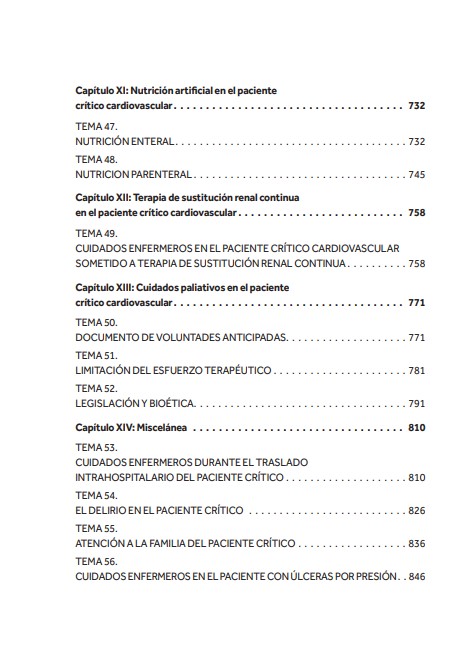 El Manual cuenta con casi 900 páginas distribuidas en 56 Temas y 14 capítulos, agrupados en un completo índice que recoge todas las técnicas que abarca el paciente crítico, cardiológico o no.
