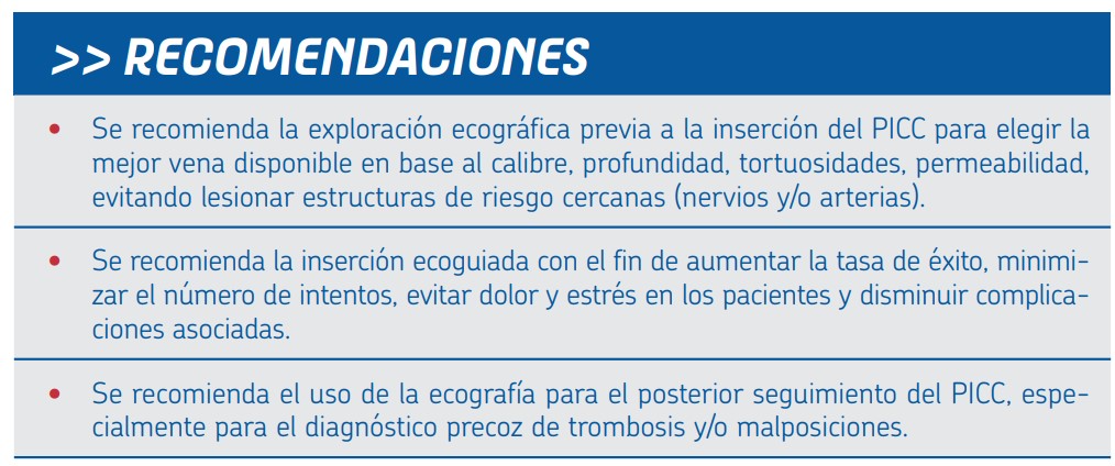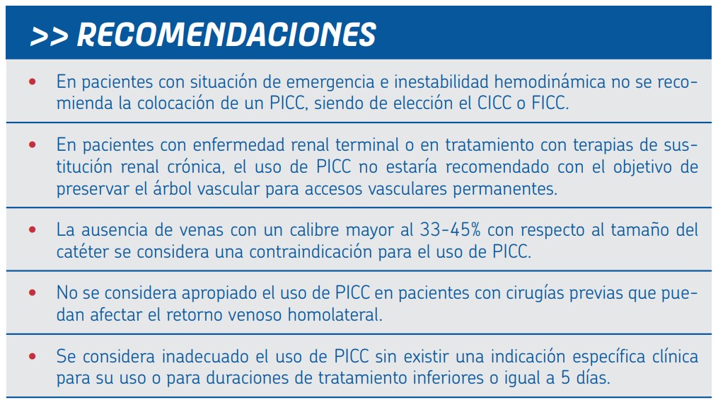 En palabras de sus autores «la guía pretende ser una base para la protocolización de la sistemática del uso de PICC en el paciente crítico a nivel local, y para valorar su efectividad. Los aspectos clínicos que son abordados son: la indicación para el uso de PICC en las Unidades de Cuidados Intensivos (UCI), la inserción del dispositivo, la prevención y el manejo de los eventos adversos y la formación de los profesionales sanitarios para el uso de PICC en UCI. Estos contenidos están identificados por bloques, cada uno de ellos tratando de responder a preguntas específicas para el manejo y elección de uso de PICC.