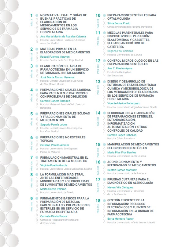 En él se abordan diferentes temas puramente farmacéuticos, completísimos, con tablas e información armada con multitud de bibliografía reciente, pero además, en varios puntos del índice existe transversalidad enfermera indiscutible en los temas, en concreto en tres de ellos: