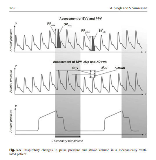 Como he comentado, hay esquemas que seguro nos son familiares, por ejemplo la respuesta a líquidos por elevación de piernas y la variación de onda de pulso arterial en pacientes con ventilación mecánica.